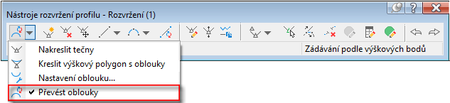 Pomocí příkazu Převést oblouky můžete převést některé typy výškových oblouků za účelem zpětné kompatibility s předchozími verzemi aplikace.