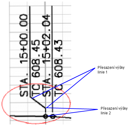 Možnosti přesazení výšky popisků slouží k předcházení kolizím popisků v hustě obsazených datových proužcích. Možnosti přesazení jsou k dispozici v rámci palety Vlastnosti zobrazení profilu nebo Vlastnosti aplikace AutoCAD.
