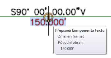 Změněn obsah: Udává, že se změnil obsah popisku nebo formát i obsah popisku. V následujícím obrázku byl symbol stopy (') změněn na text „stopy“.
