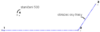| bod | Volitelný referenční bod pro staničení Stanovený bod nemusí ležet na ose trasy, musí však s osou trasy sousedit (ne však za koncovými body). |