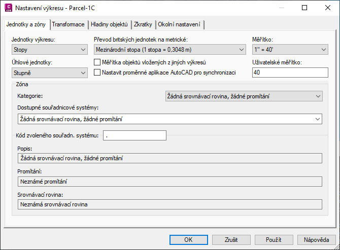 Dalším důležitým nastavením je možnost Nezávislá hladina Zap. Pokud chcete mít kontrolu nad viditelností objektů zapínáním a vypínáním hladin, musí být nastavena možnost Ne.