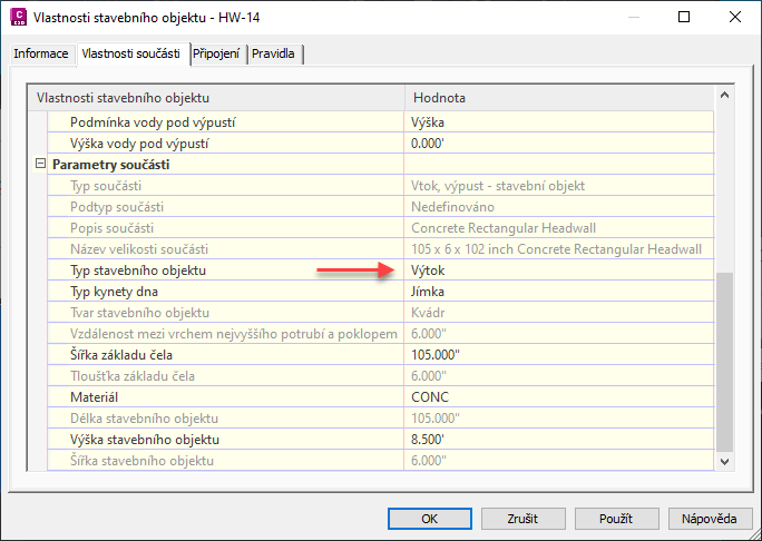Výchozí nastavení stavebních objektů lze zadat v dialogu Upravit nastavení objektu – stavební objekt.