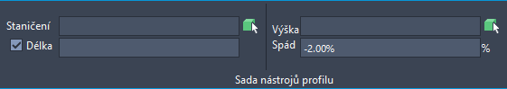 Pomocí transparentního příkazu Sada nástrojů profilu můžete při vytváření a úpravě profilů určovat hodnoty staničení, výšky, spádu nebo délky.