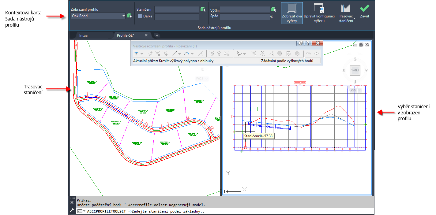 vyberte zobrazení profilu ve výkresu.