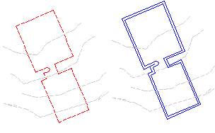 Návrhové linie a polygony zaměření vytvářejí odsazené návrhové linie.