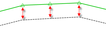 V případě úpravy povrchu (například při zmenšení výšky) však již bude relativní výškové odsazení mezi návrhovou linií a povrchem zachováno, jak je znázorněno na následujícím obrázku.