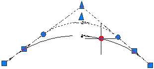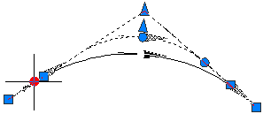 Uzly koncových bodů pro přetažení počátku nebo konce oblouku podél entity připojení: