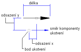 Určuje vzdálenost mezi středem směrové šipky a komponenta kotvy ve směru osy X.