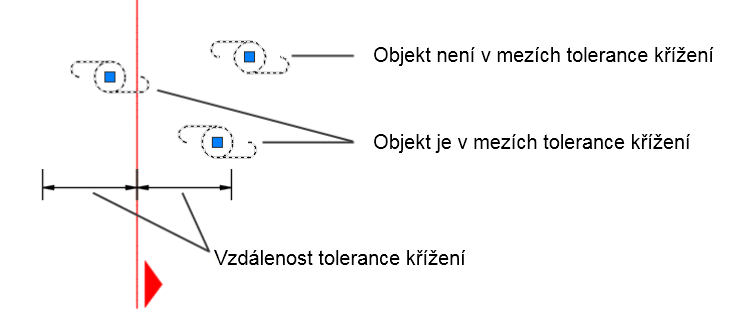 Možnosti kříženíUrčuje maximální vzdálenost od stopy příčného řezu, ve které se objekt může nacházet, aby se zobrazil jako křížení.