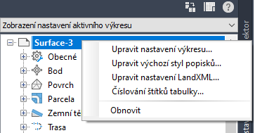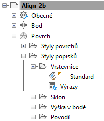 Upravte nastavení popisku na úrovni Výkres, na úrovni objektu (například Povrch) a na úrovni popisek-styl-typ (například Vrstevnice)