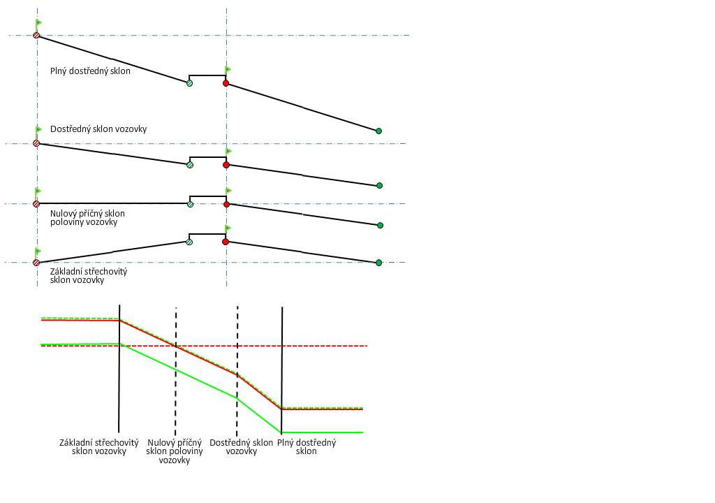 Vysvětlení diagramů klopení vozovky najdete v části Metody klopení osy otáčení okolo bodů otáčení.