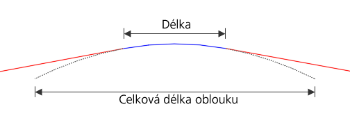 Hodnota celkové délky oblouku zobrazuje celkovou délku výškového oblouku, zatímco vlastnost délky zobrazuje délku vyřešené části geometrie oblouku, například když jsou podél oblouků připojeny tečny.