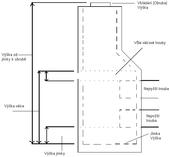 Obruba Horní výška stavebního objektu šachty nebo jímky (s více přítoky).