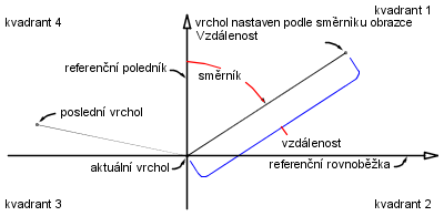 Dále je uveden příklad příkazu polygonu Směrník Vzdálenost: