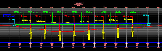 Most vytvořený při přenosu komponentové silnice a mostu z aplikace InfraWorks do aplikace Civil 3D: ![]() Most promítnutý do zobrazení profilu v aplikaci Civil 3D: ![]() Poznámka: Chcete-li zobrazit promítnuté objekty na výkresech vytvořených pomocí nástrojů pro vytvoření situací, je nutné promítnout most až po použití příkazu Vytvořit výkresy.