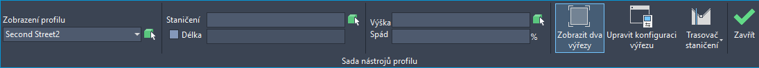 Konfigurace výřezu se změní na zobrazení dvou výřezů, jednoho s pohledem půdorysu a druhého se zobrazením profilu.