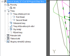 Vytvořte stopy příčných řezů podél osy trasy modelu koridoru. |