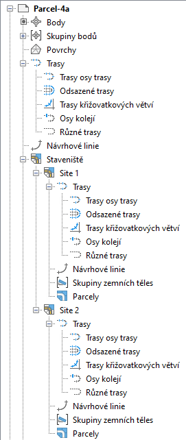 - Knihovna Trasy v rámci knihovny topologie nebo staveniště. Při umístění sem budou trasy interagovat s dalšími trasami a parcelami na staveništi. Pokud chcete, aby trasy vytvářely parcely z uzavřených regionů, ale nedělily existující parcely, přiřaďte trasy a parcely do samostatných stavenišť.