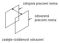 Vytvoří pracovní rovinu, která je odsazená o zadanou vzdálenost od vybrané zdrojové pracovní roviny. Další informace naleznete níže v části Pracovní roviny odsazení.