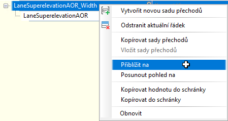 - Pokud upravíte počáteční staničení přechodu, koncové staničení se upraví tak, aby byla zachována délka přechodu.