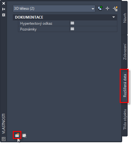 Po přiřazení k objektu budou do sady vlastností přidávána data vlastností spojených s objektem. Hodnoty vlastností se získávají přímo z objektu (například kubatura 3D tělesa) nebo jsou u objektu zadány ručně.