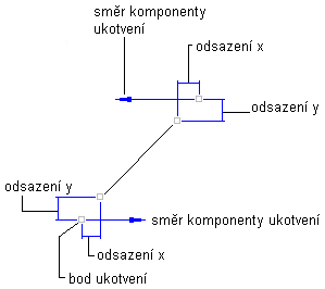 - Počáteční a koncový bod: Pomocí tohoto způsobu ukotvíte počáteční a koncový bod komponenty čáry. Délka a úhel čáry jsou určeny polohou objektů ukotvení a při úpravě komponent kotvy se upravují. V následujícím obrázku je znázorněna čára definovaná tímto způsobem:
