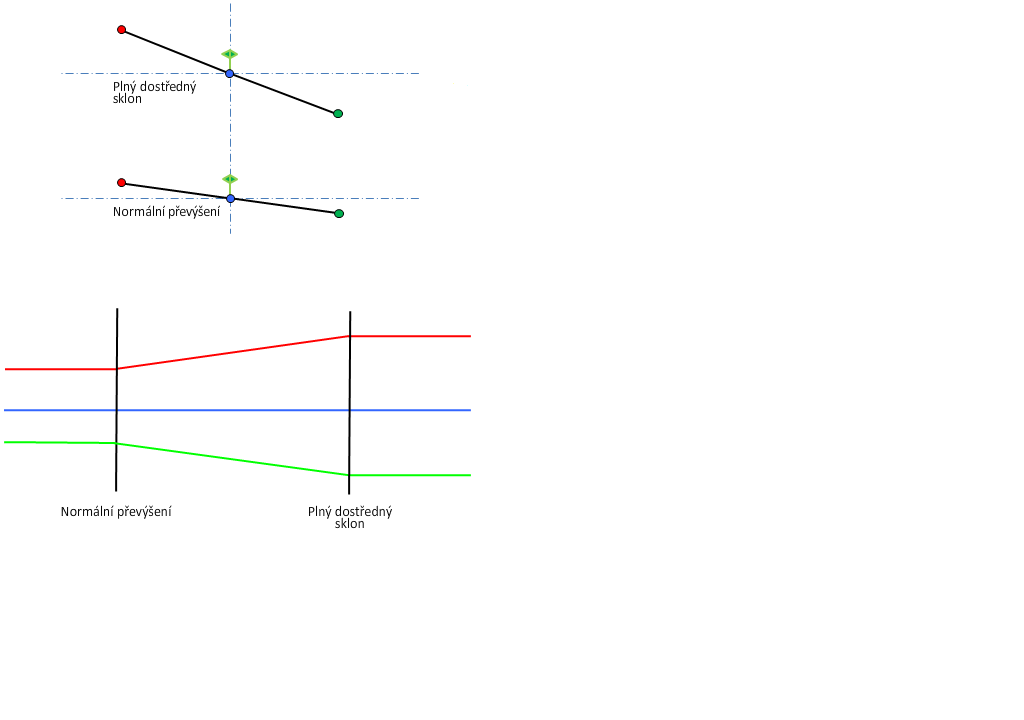 Vysvětlení diagramů klopení vozovky najdete v části Metody klopení osy otáčení okolo bodů otáčení.