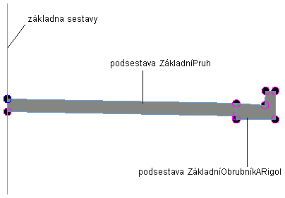 Pro ukončení definice objektu šablony typických řezů zpravidla přidáte vícenásobný objekt podsestavy, jako jsou jízdní pruhy, obrubníky nebo příkopy, spolu s trasou. Každá podsestava může být spojena s bodem základny šablony typických řezů, s jakýmkoliv bodem odsazení nebo s jinou podsestavou, která je již k šabloně typických řezů přidružena. Podsestava může být také připojena k těmto bodům s poměrným odsazením a/nebo výškou od bodu.
