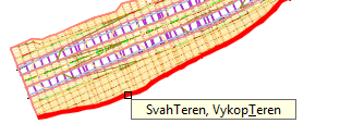 Spojení návrhových linií: Zaškrtnutím políčka Spojit návrhové linie v přilehlých oblastech spojíte návrhové linie v přilehlých úsecích, které mají stejný kód. Například pomocí této možnosti spojíte návrhovou linii hrany paty svahu, které končí v jednom úseku a začíná v přilehlém úseku.