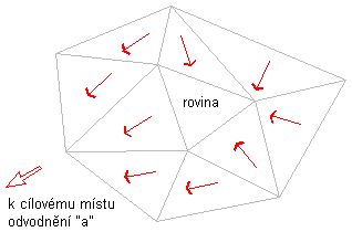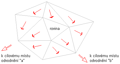Jestliže se některé z opačných nerovných trojúhelníků svažují dolů od vodorovné plochy hranice, ale odtok z nich má stejný cílový bod odvodnění, pak je vodorovná plocha částí povodí tohoto cílového bodu odvodnění „a“, jak je ukázáno na následující ilustraci: