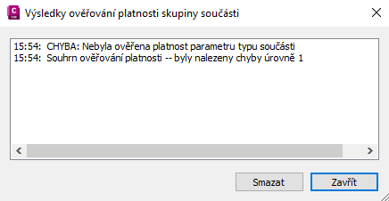 dialog s výslednou chybou, pokud je součást neplatná