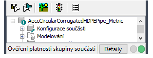 Při úspěšném dokončení těchto postupů dojde k ověření platnosti součásti a na stavovém řádku se zobrazí hlášení, zda bylo ověření platnosti součásti úspěšné.