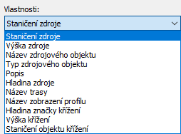 Křížení a popisky můžete do zobrazení profilů přidávat pomocí příkazu Přidat křížení do zobrazení profilu u následujících typů objektů: