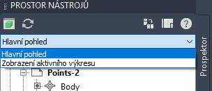 Pokud je otevřen více než jeden výkres, název aktivního výkresu se zobrazí tučně ve stromu Prospektor.