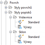 Kliknutím na možnost +/- rozbalte kolekci a seznamte se se styly popisků objektu. Některé objekty mají více úrovní stylů popisků.