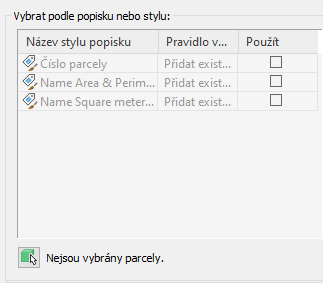 Chcete-li do tabulky přidat všechny popisky s určitým názvem stylu popisku, zaškrtněte políčko Použít vedle názvu stylu popisku. Při použití tohoto způsobu jsou všechny popisky přepnuty do režimu štítku a podřazený styl není vytvořen.