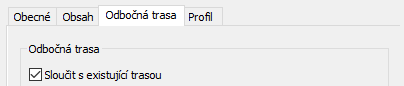 Podobně můžete na kartě Profil vybrat možnost sloučení profilu odbočné trasy s existujícím profilem.