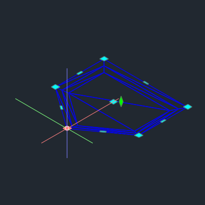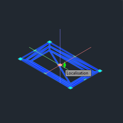 Modrý uzel uprostřed nádrže vodorovně upraví umístění aktuální geometrie nádrže. Kliknutím a přetažením uzlu umístění přesunete ve výkresu celou nádrž. Můžete také určit bod protažení na příkazovém řádku.