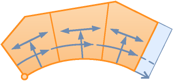 Vytvoří linii pozemku definovanou pomocí počátečního a koncového bodu podél průčelí parcely a pevného bodu otáčení na protější straně parcely. Nastavte velikost parcely otáčením linie pozemku tak, aby protínala jiné body podél průčelí, s ohledem na minimální výměru a mez průčelí parcely.