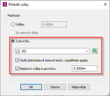 Poznámka: Pokud ve výkresu nejsou žádná zemní tělesa, možnost Ze zemních těles není k dispozici.