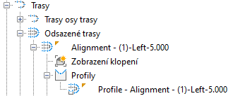 Odsazené profily můžete umísťovat do existujícího zobrazení profilu. Další informace naleznete v části Karta Vytvořit odsazený profil (dialog Vytvořit odsazenou trasu).