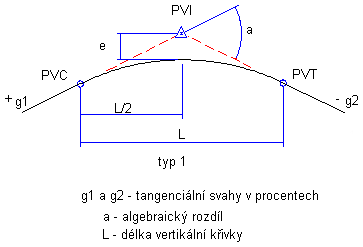 Profily rozložení používají dva typy oblouků: vrcholové výškové a údolnicové výškové oblouky. Vrcholové výškové oblouky se umísťují na vrcholy kopců nebo na místa, kde se spád mění na nižší hodnotu. Existují tři typy vrcholových výškových oblouků – přechod od pozitivního spádu k negativnímu, od pozitivního spádu k pozitivnímu a od negativního spádu k negativnímu: