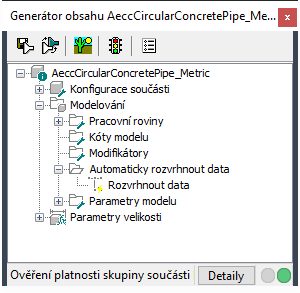 Po dokončení modelu součásti je třeba definovat bod vložení součásti za účelem zajištění, že jej bude možné správně vložit do výkresu. Možnost automatického rozvržení dat v prohlížeči součástí určuje, jakým způsobem lze definovat body vložení. Pokud tuto možnost povolíte, bude v prohlížeči součástí, který zahrnuje příkazy pro přidání bodů vložení, k dispozici složka pro automatické rozložení dat.