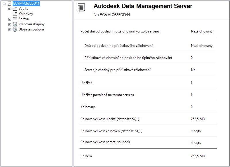 - počet knihoven Obsahového centra na serveru (neplatí u aplikace AutoCAD Civil 3d)