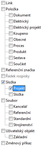 Soubor | Pomocí asociace s vlastností souboru lze vytvořit uživatelskou vlastnost souboru. Uživatelské vlastnosti mohou být omezeny na určitý typ kategorie, například Základní nebo Konstrukční. |