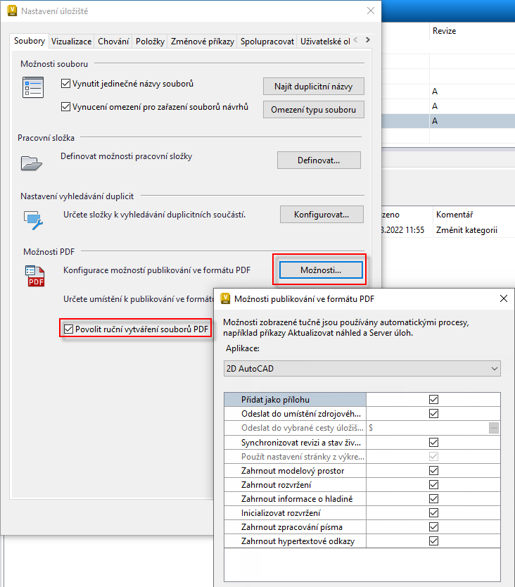 | Možnosti publikování ve formátu PDF pro 2D soubory aplikace AutoCAD | |