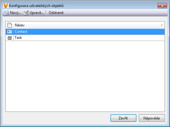 Kliknutím na položku Konfigurovat otevřete dialog Konfigurace uživatelských objektů.