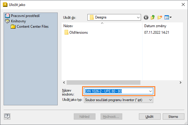 Pomocí uživatelského Obsahového centra můžete při přidávání knihovny do souborů sestav aplikace Inventor změnit název, vlastnosti a další.