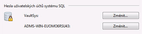 Při instalaci aplikace Vault jsou účtům služby SQL VaultSys a ADMS_%NázevServeru% poskytnuta výchozí hesla. Správce může tato hesla změnit, aby byla bezpečnější.