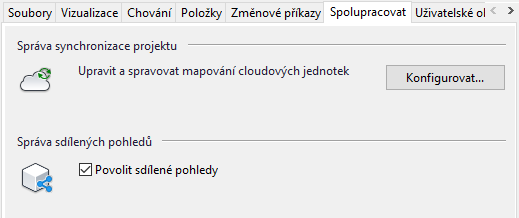 Správci mohou povolit, zakázat a spravovat funkce Sdílené pohledy a Synchronizace projektu.